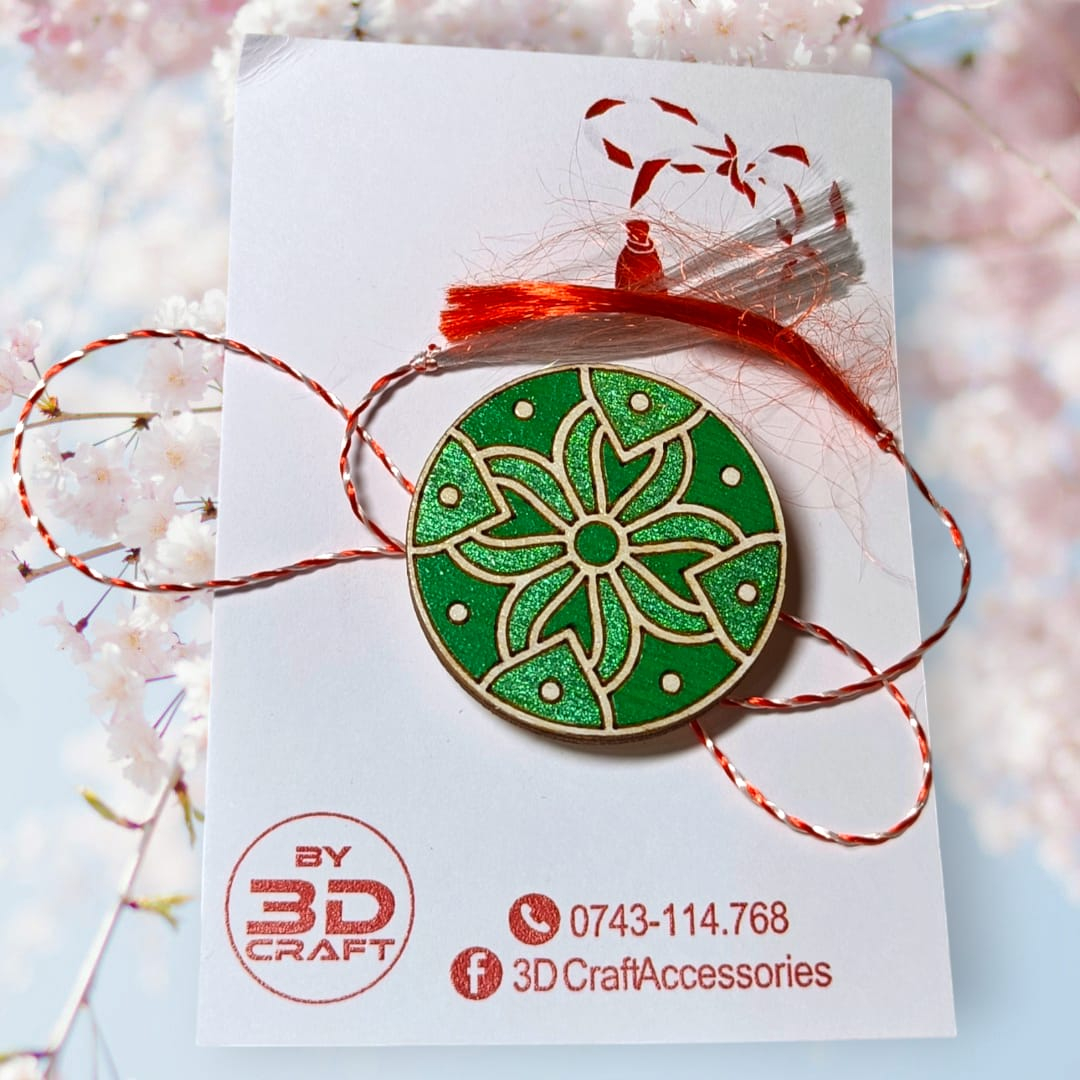Mărțișor din lemn pictat manual, cu design unic și șnur tradițional alb-roșu. Un simbol al primăverii, perfect pentru a aduce bucurie celor dragi!
