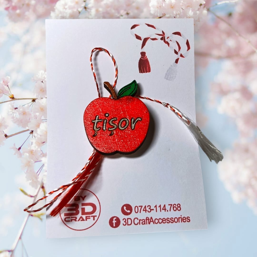 Acest mărțișor unic aduce un strop de culoare și eleganță, fiind realizat din lemn și pictat manual cu culori acrilice de înaltă calitate. Designul său este inspirat din frumusețile primăverii, fiecare mărțișor fiind o mică operă de artă, creată cu grijă pentru a transmite bucurie și a celebra frumusețea începutului de sezon.